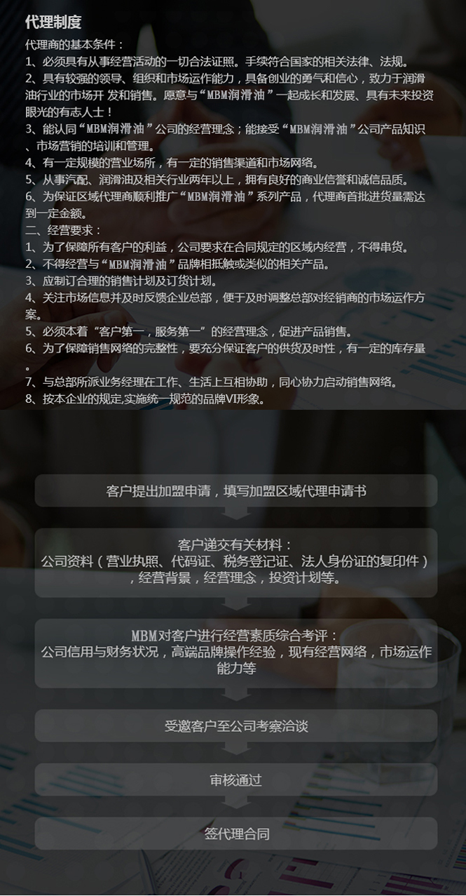 5、業(yè)務(wù)支持:不定期派遣業(yè)務(wù)管理人員、營銷策劃人員、協(xié)助銷售人員幫助代理商開拓市場。